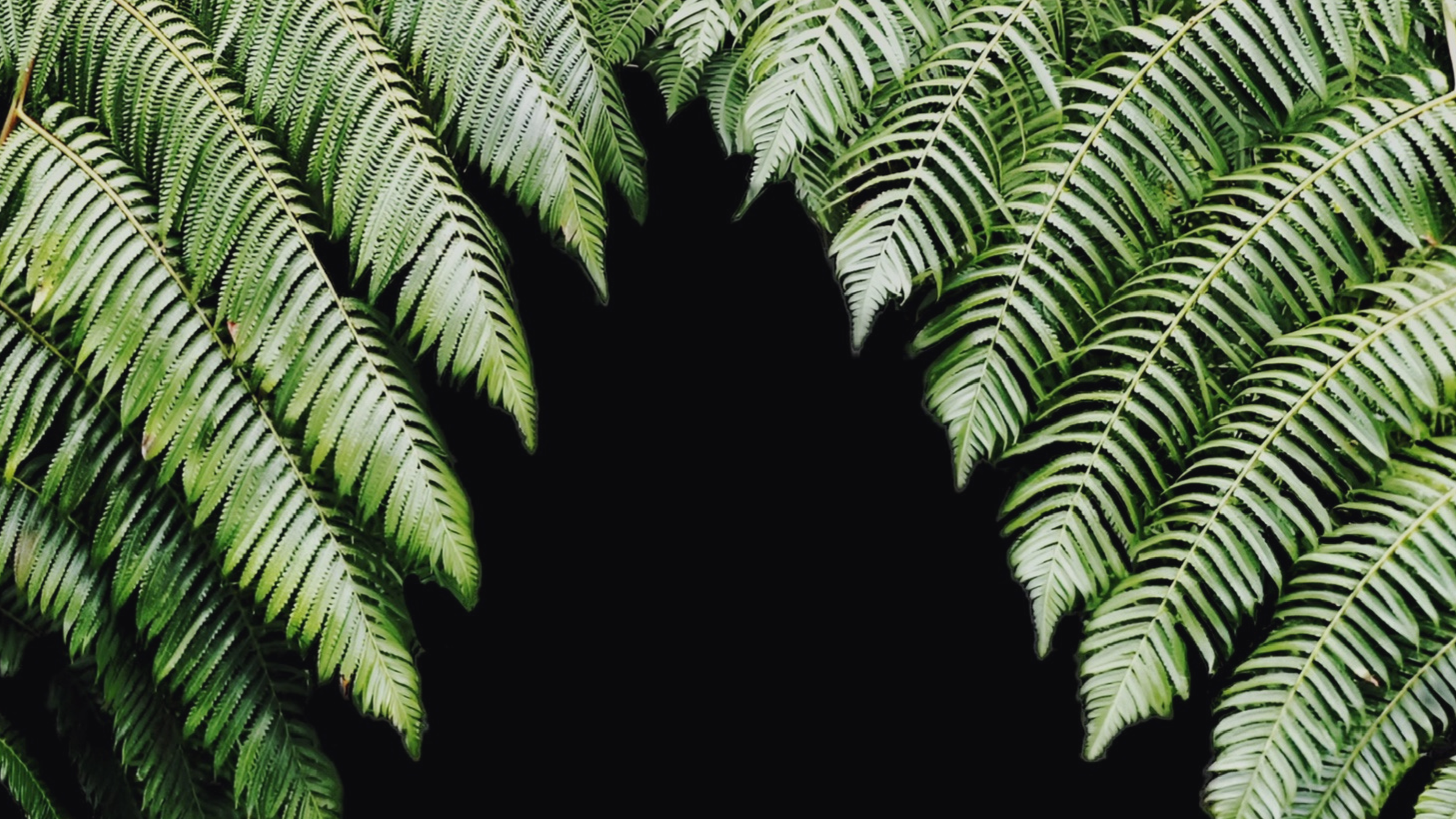 Green fern leaves framing a black background